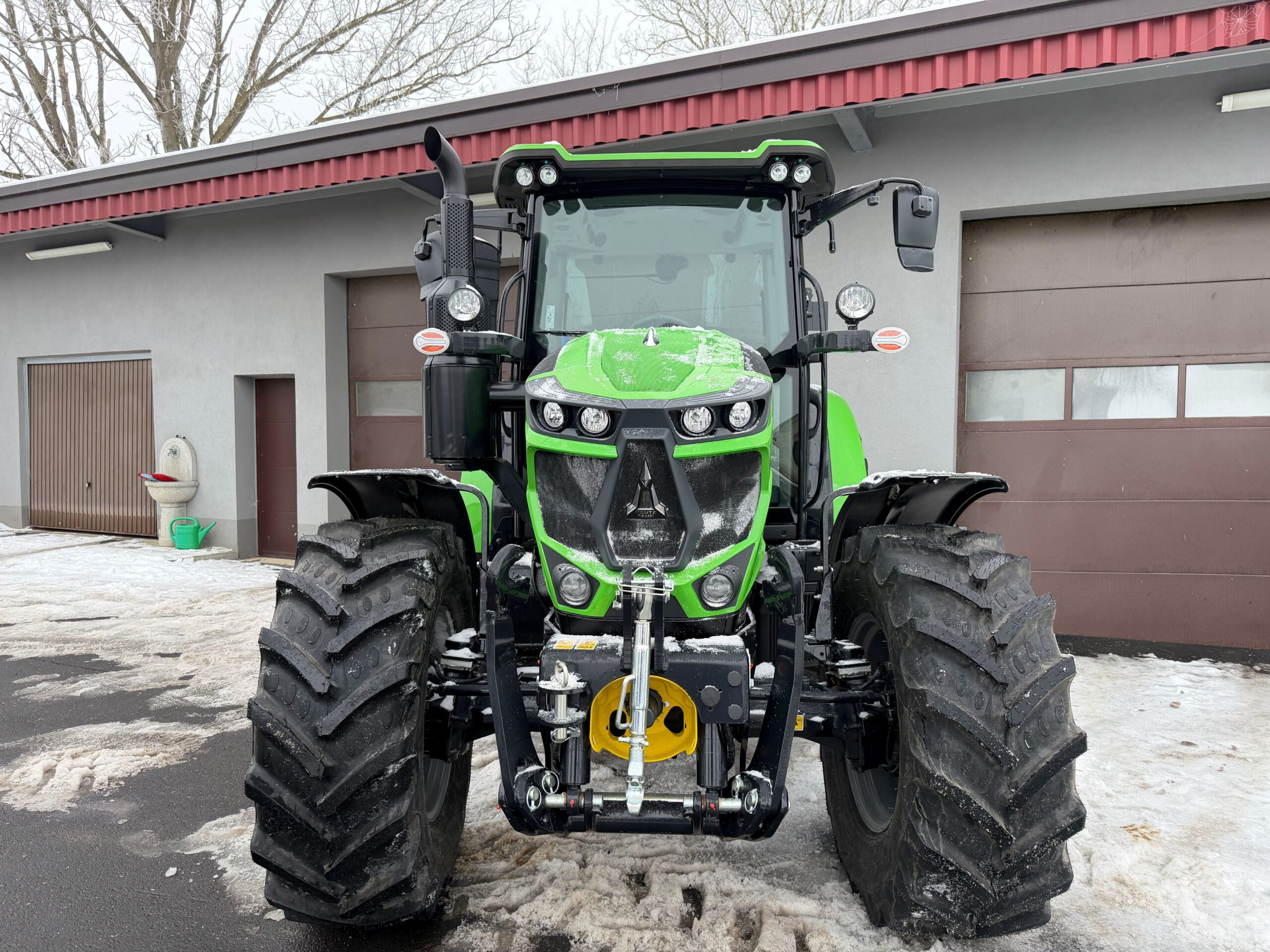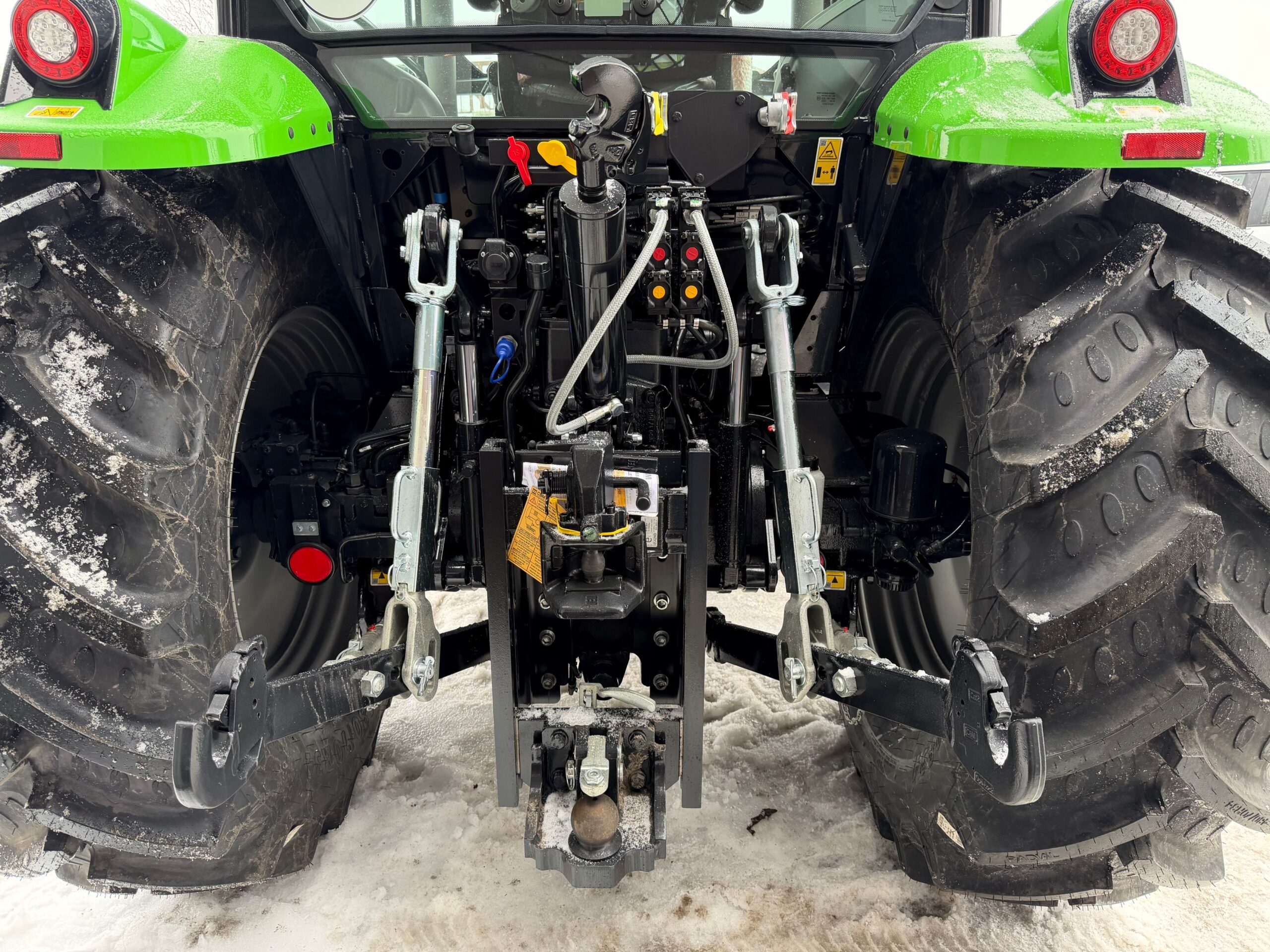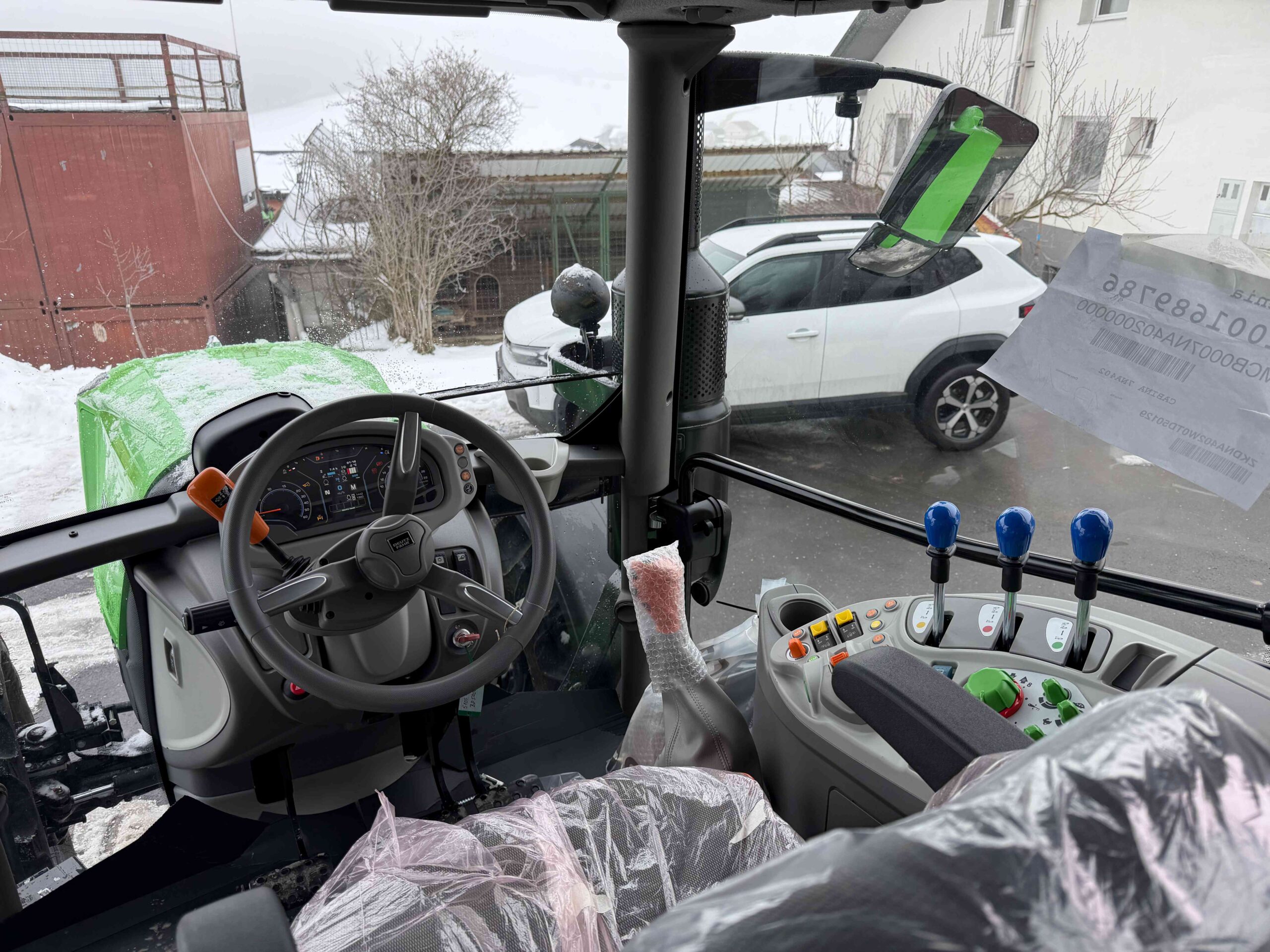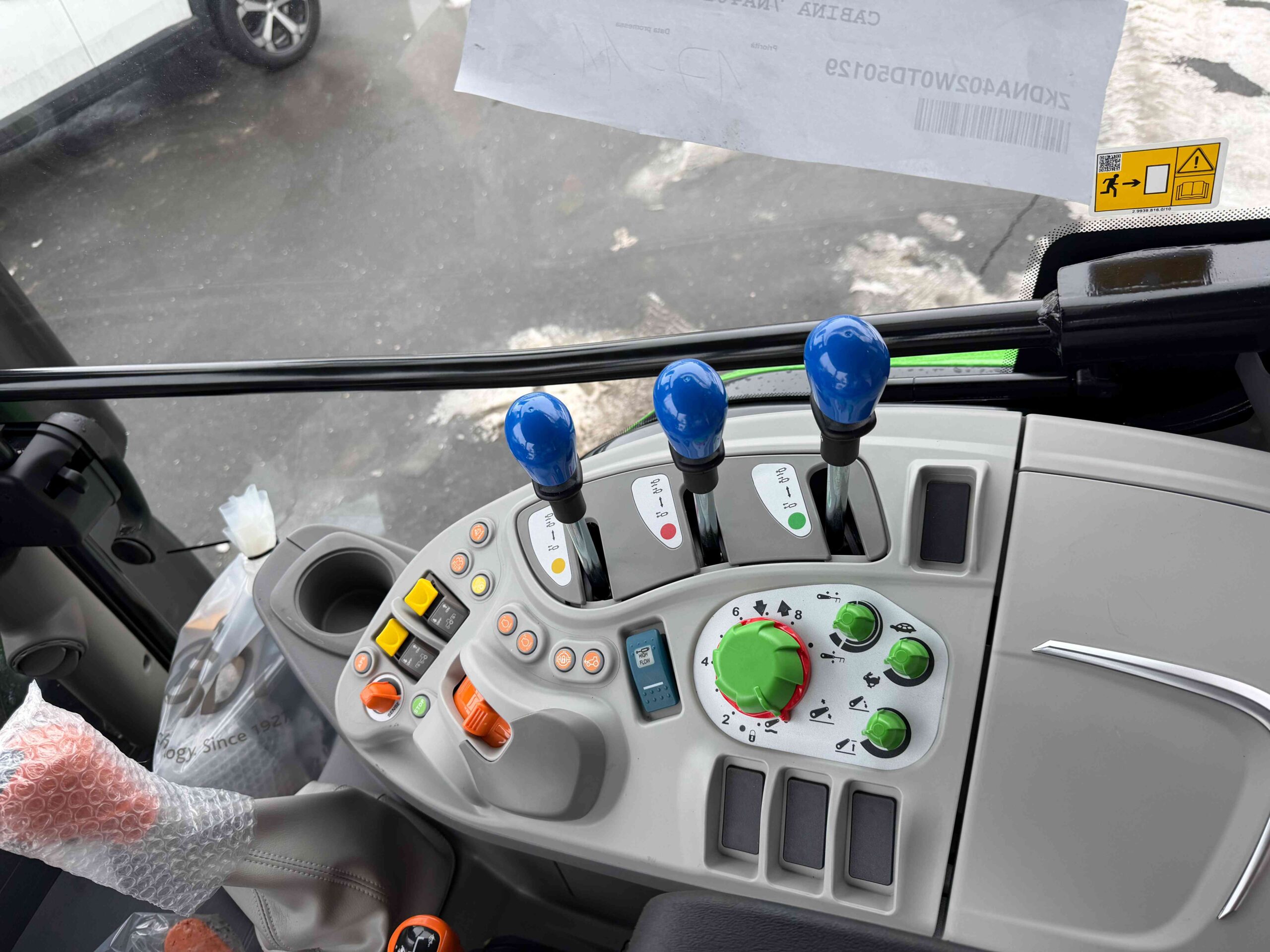 – el.-hidr. sklopka inverterja – el.-hidr. sklopka kardana – stikalo elektrokroga v kabini – hidrostatično krmiljenje – mehanska parkirna zavora – Full LED vozne luči (smerokaz, pozicija, stop) – delovne luči 4 naprej + 4 nazaj – delovne luči v pokrovu motorja – izpuh ob stebru kabine – kapaciteta rezervoarja goriva: 160 l – kapaciteta rezervoarja AdBlue: 12 l – Viscostatic ventilator – akumulator 12V-100Ah-1000A(EN) – 3 hidr. tokokrogi regulator pretoka, hitre spojke – pretok hidr. črpalke: 90 l/min – slider okvir priklopa – teleskopski stabilizatorji – kapaciteta dviga 5410 kg – elektronska hidravlika AUTO PTO funkcija – hitro-vpenjalne kljuke kat.2 – zun. upravljanje hidravlike in kardana – TopVision 4-stebrna kabina zvočno izolirana gretje, ventilacija – InfoCentre+ z 3.5″ zaslonom – klimatska naprava – Deutz-Fahr Green barva – el.-hidr. vklop 4-kolesnega pogona z zaporo diferenciala – CTM 4G kom. modul za telemetrijo – “Sense Clutch” nastavljiva odzivnost inverterja – kabina nameščena na tihih hidro-blokih – kardanska gred 540-540E-1000-1000E – teleskopska stranska ogledala – brisalec zadnjega stekla – nastavljiv volanski drog – zaboj za orodje – “Stop & Go” sistem – menjalnik 30F+30R, 40 km/h ECO 3 powershift stopnje APS (automatic powershift) SpeedMatching – fiksna platišča – pnevmatike zadaj 480/70 R34 – pnevmatike spredaj 420/70 R24 – podaljški zadnjih blatnikov