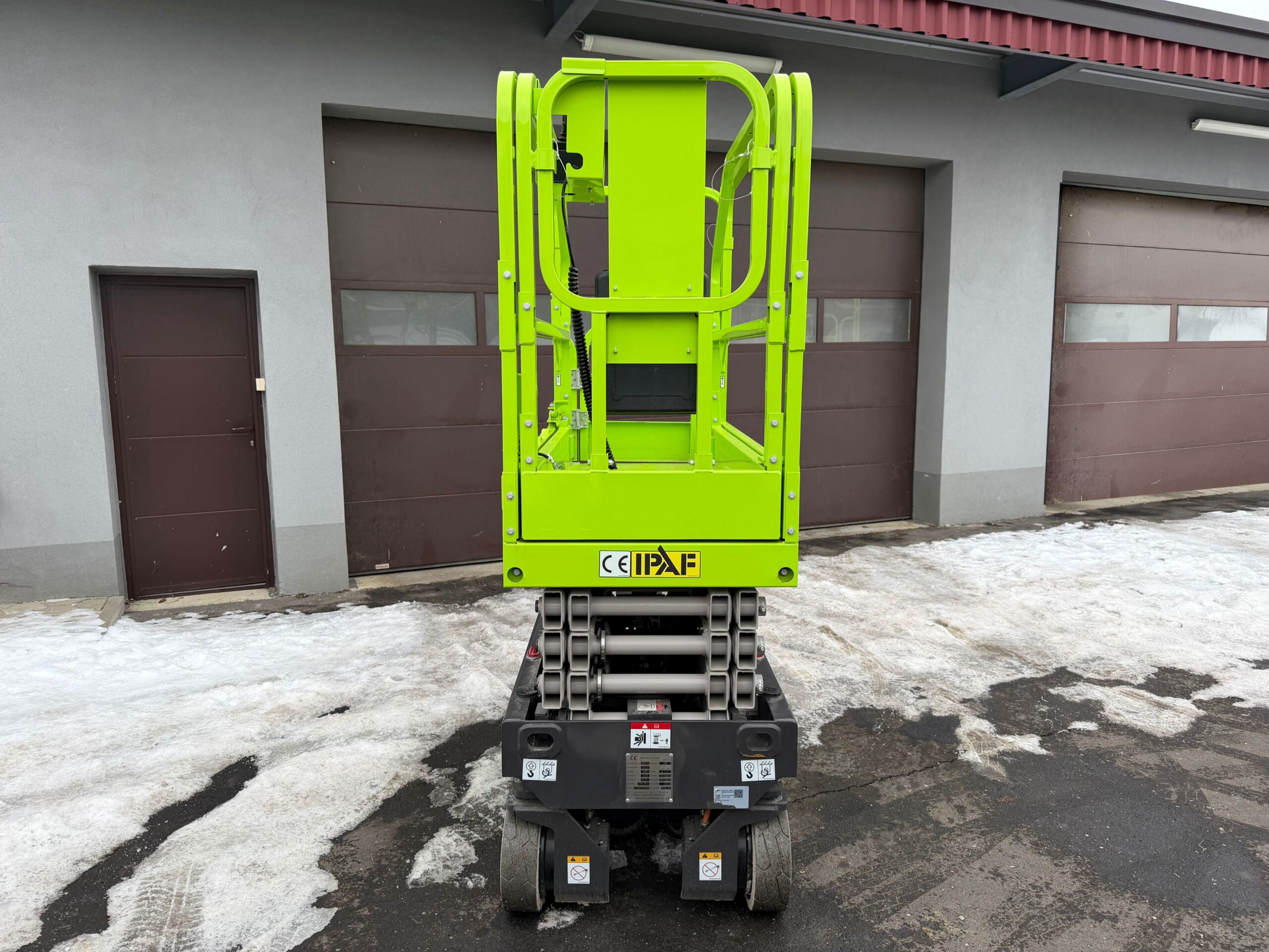 Delovna višina (v zaprtih prostorih/na prostem) 7,8 m/6,4 m 25 čevljev 7 palcev/21 čevljev 0 palcev A – Višina dvignjene ploščadi (v zaprtih prostorih/na prostem) 5,8 m/4,4 m 19 čevljev/14 čevljev 5 palcev B – Višina ploščadi – v shranjenem stanju 1,05 m 3 čevlje 5 palcev C – Dolžina ploščadi 1,65 m 5 čevljev 5 palcev D – Širina ploščadi 0,74 m 2 čevlja 5 palcev Podaljšek ploščadi 0,91 m 3 čevlje E – Skupna višina (z dvignjenimi ograjami) 2,20 m 7 čevljev 3 palcev Skupna višina (z spuščenimi ograjami) 1,79 m 5 čevljev 10 palcev F – Skupna dolžina 1,85 m 6 čevljev 1 palec G – Skupna širina 0,76 m 2 čevlja 6 palcev H – Medosna razdalja 1,37 m 4 čevlje 6 palcev I – Oddaljenost od tal (Složeno) 0,06 m 2,4 palca J- Oddaljenost od tal (dvignjeno) 0,016 m 0,65 palca Zmogljivost Nosilnost ploščadi 230 kg 510 lb Nosilnost na podaljšku ploščadi 113 kg 250 lb Maks. Število delavcev (v zaprtih prostorih/na prostem) 2/1 2/1 Hitrost vožnje (složeno) 4 km/h 2,5 mph Hitrost vožnje (dvignjeno) 0,8 km/h 0,5 mph Polmer obračanja (notranji) 0,1 m 4 in Polmer obračanja (zunanji) 1,6 m 5 ft 3 in Dvižni motor 24 V/3,3 kW 24 V/3,3 kW Pogonski motor 24/0,65 kW 24/0,65 kW Čas dvigovanja/spuščanja 20 s/24 s 20 s/24 s Naklon 25 % (14°) 25 % (14°) Maks. Delovni naklon (bočni/navpični) 1,5°/3° 1,5°/3° Upravljanje Proporcionalno upravljanje Proporcionalno upravljanje Pogon Sprednja kolesa Sprednja kolesa Zavora Sprednja kolesa Sprednja kolesa Pnevmatika Ø323 mm x 100 mm φ33 cm × 10 cm Moč Baterija 135 Ah Li-ion 135 Ah Li-ion Polnilnik 24 V/30 A 24 V/30 A Polnilnik (dodatna oprema) N/A N/A Teža Bruto 1455 kg 3210 lb