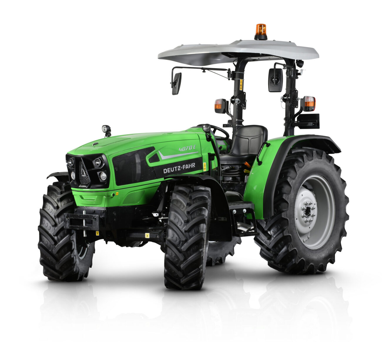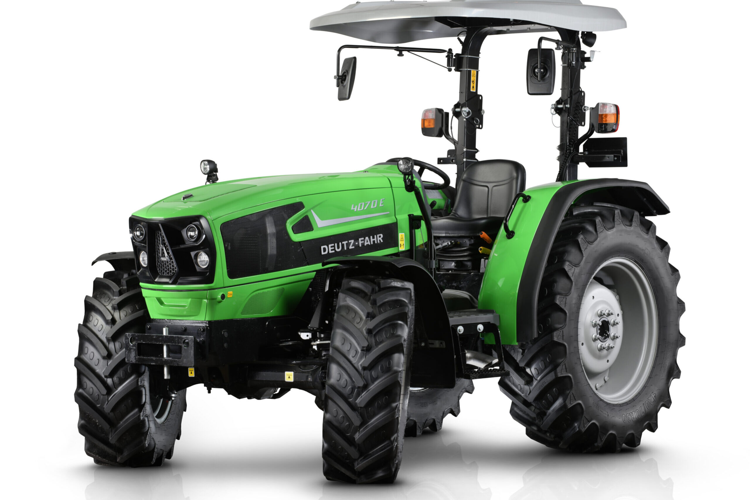 Nova serija 4E Stage V je idealen traktor za manjše kmetije in operaterje, lokalne oblasti in vrtnarska podjetja. Z izbiro štirih različnih modelov z izhodno močjo od 66 KM (48 kW) do 102 KM (71 kW) in z različicama 4WD in 2WD je ta serija popoln uporabni traktor za posebne potrebe vsakega uporabnika. Nova zasnova rešetke je moderna in elegantna, medtem ko oblike robustnega pokrova iz vrhunskega stiskanega jekla poudarjajo izjemno kompaktnost teh komunalnih traktorjev. Novi trivaljni motorji FARMotion 35 so izjemno zmogljivi, zanesljivi in varčni. Na voljo so tri konfiguracije mehanskega menjalnika z največjo hitrostjo 40 km/h (pri hitrosti motorja ECO), 40 km oziroma 30 km/h (slednje samo za različice z 2WD). Ti traktorji so opremljeni s prednjimi osmi, ki jih je DEUTZ-FAHR razvil posebej za ta razred moči. S kotom krmiljenja 55°, elektrohidravlično vklopljenimi zaporami diferenciala ter štirikolesnim pogonom in zaviranjem na vsa kolesa so traktorji nove serije 4E neustavljivi. Izredna vsestranskost nove serije 4E pride do izraza pri delu s skoraj vsemi priključki. Možnosti, ki so na voljo, vključujejo zadnji dvig s sistemom EasyLift, hitre spojke in največjo nosilnostjo do 3500 kg, hidravlični sistem, ki je na voljo kot različici 48 l/min ali 56 l/min s tremi razdelilniki in priključno gredjo z do 3 hitrostmi. Voznikova platforma izpolnjuje najvišje standarde udobja. Vse kontrole so bile preoblikovane v skladu z najnovejšimi ergonomskimi načeli. Nova armaturna plošča zagotavlja jasne informacije o vseh parametrih delovanja traktorja. Nova serija DEUTZ-FAHR 4E: vsestranski in udoben uporabni traktor.
